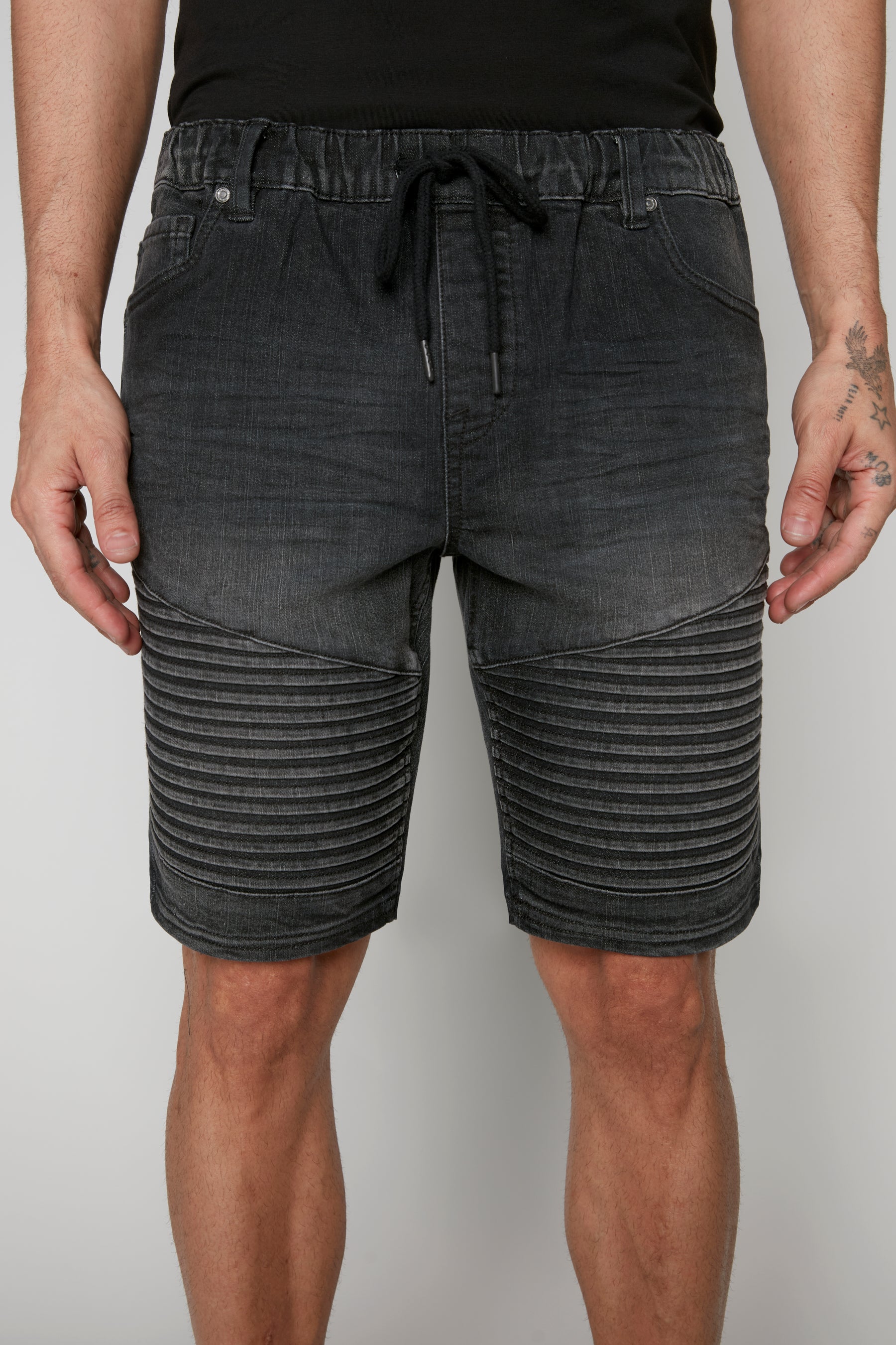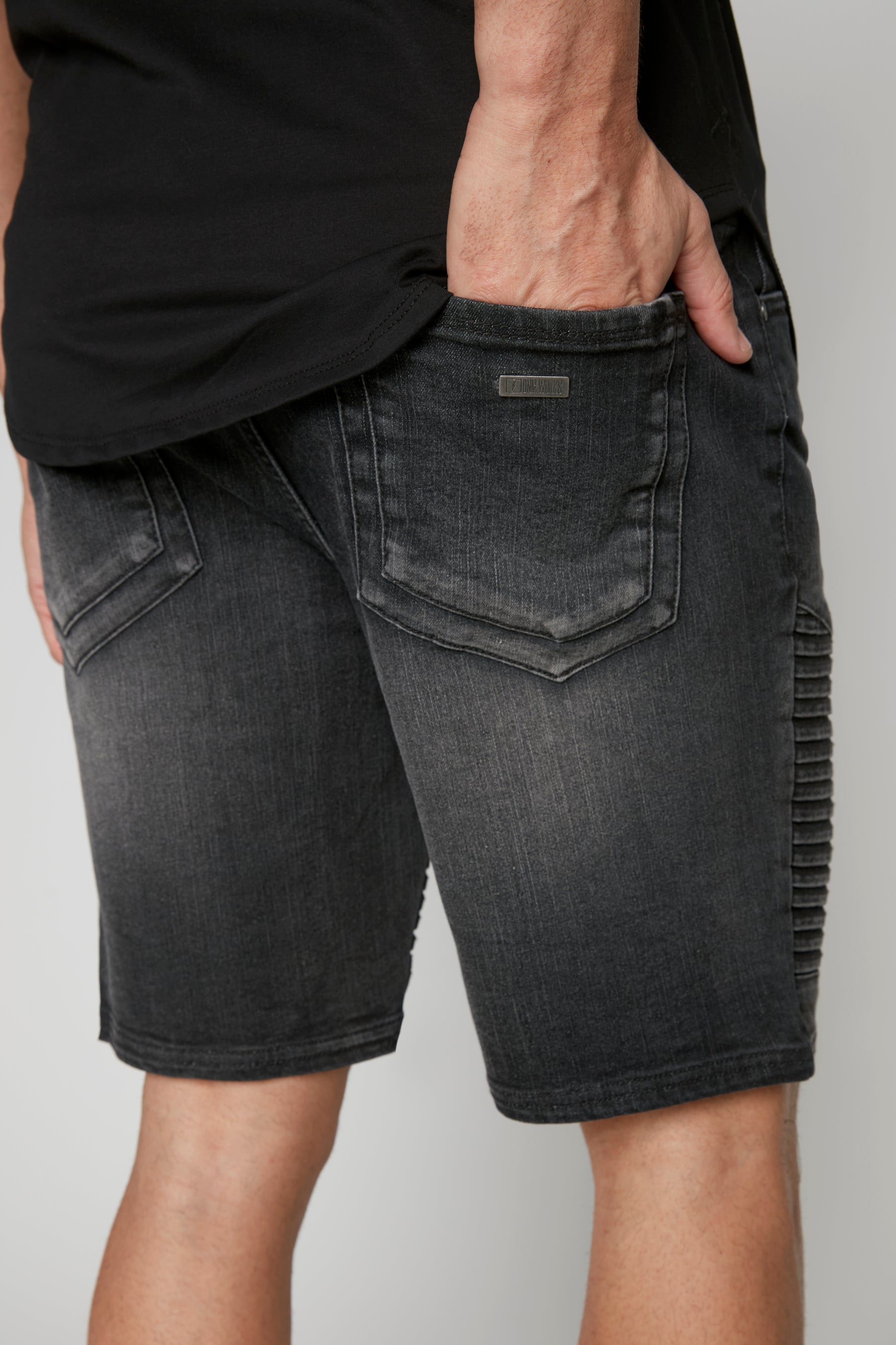 PHOENIX - Mens Flex Denim Moto Short - Dark Grey Wash