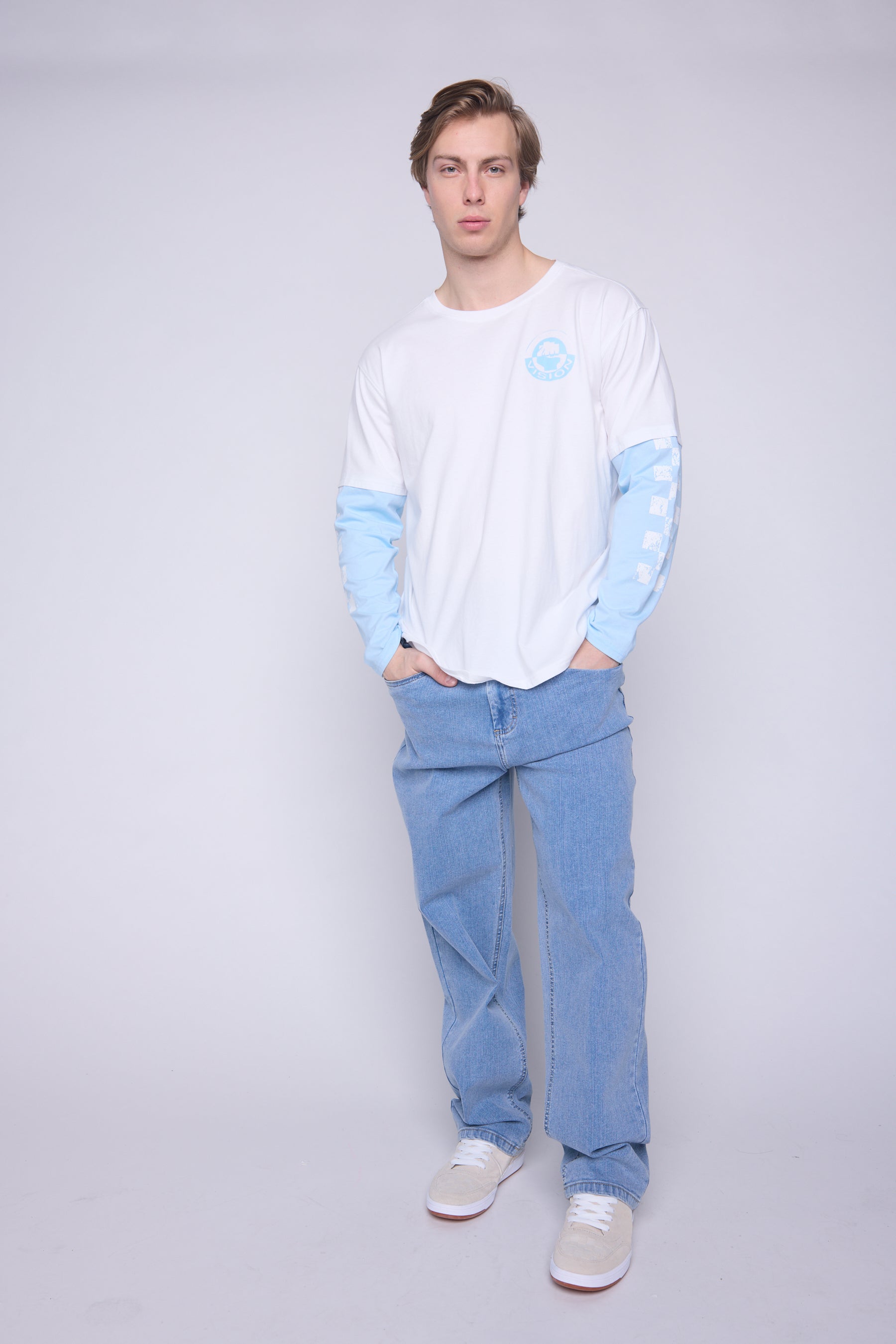 Crew Neck Full Long Sleeve Fooler - Ivory/Blue Cloud