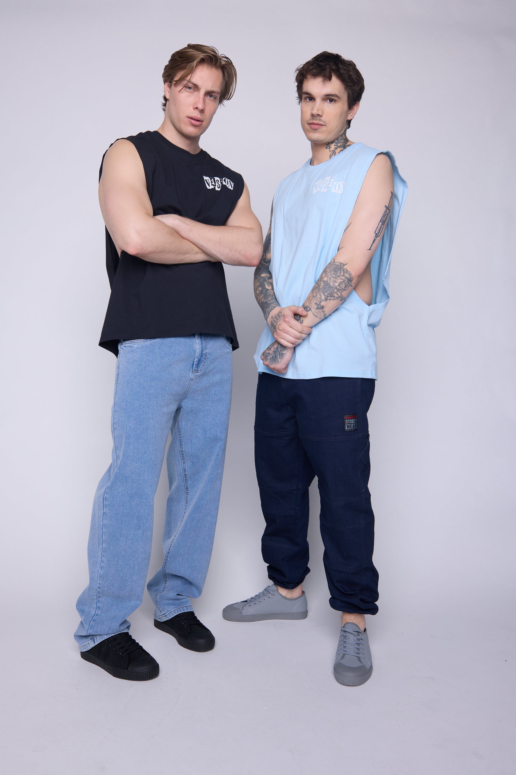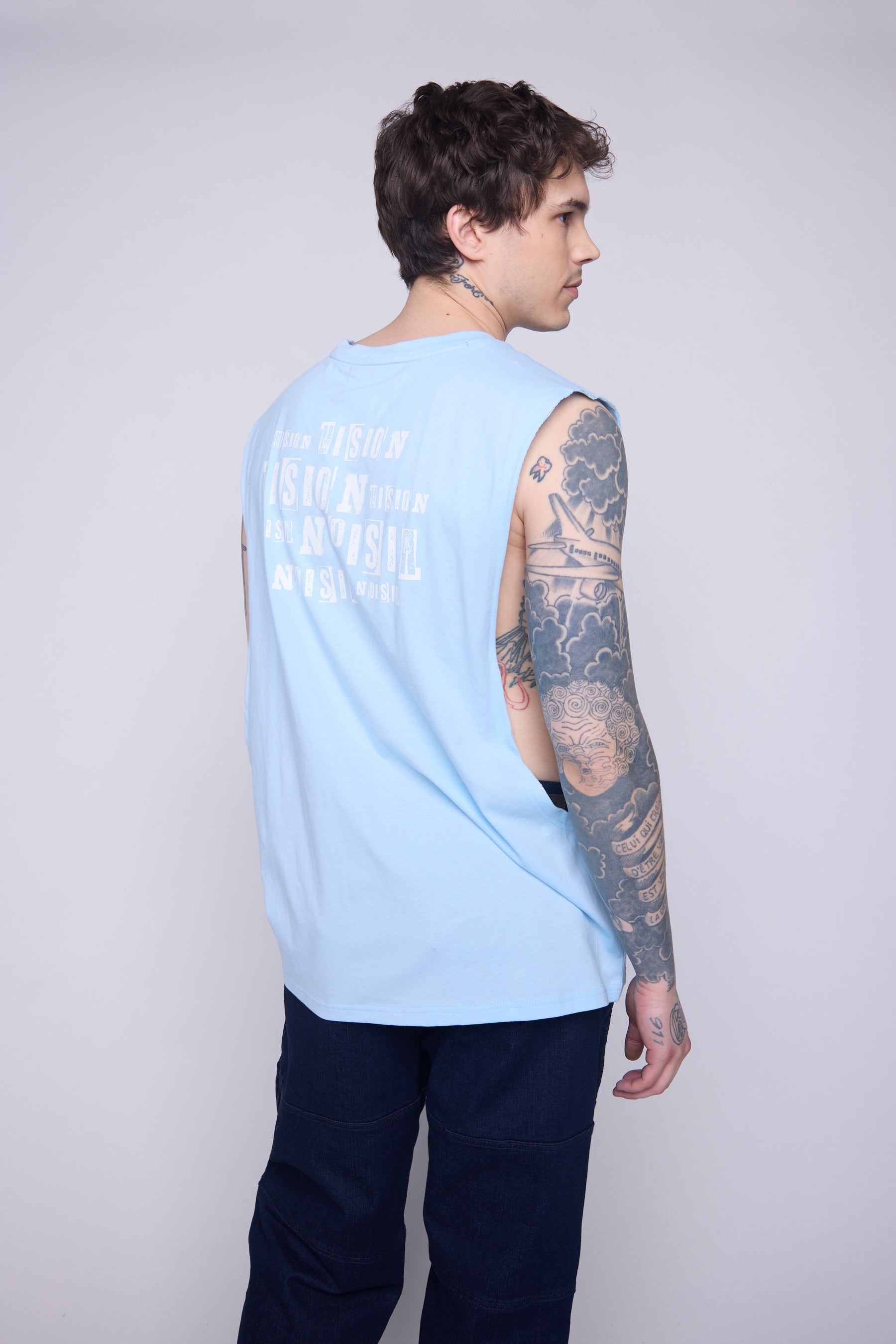 Vision Street Wear Muscle Deep Armhole Vintage Poster Prints Cloud Blue