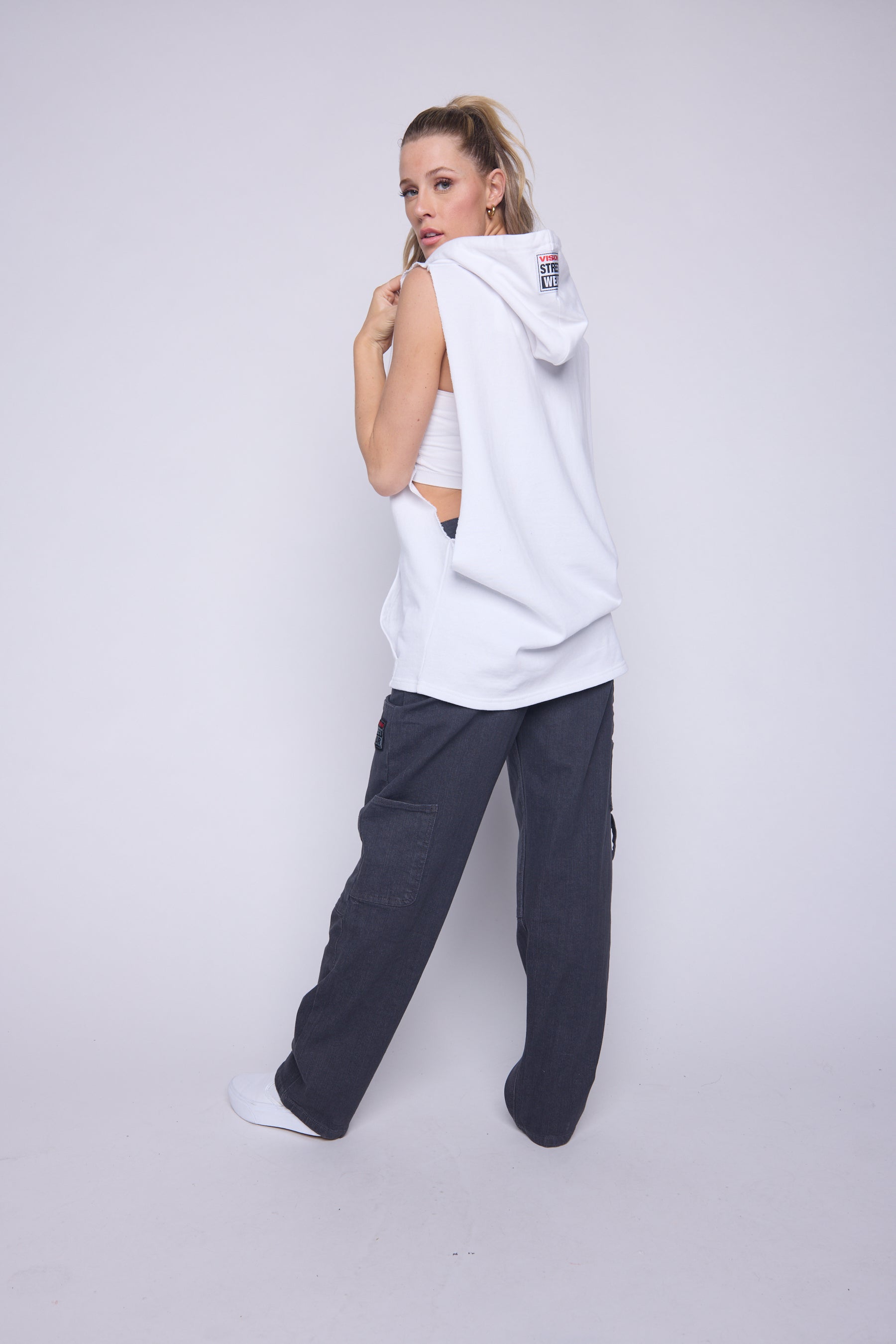 Vision Street Wear Printed Box Logo Sleeveless Hoodie Ivory