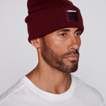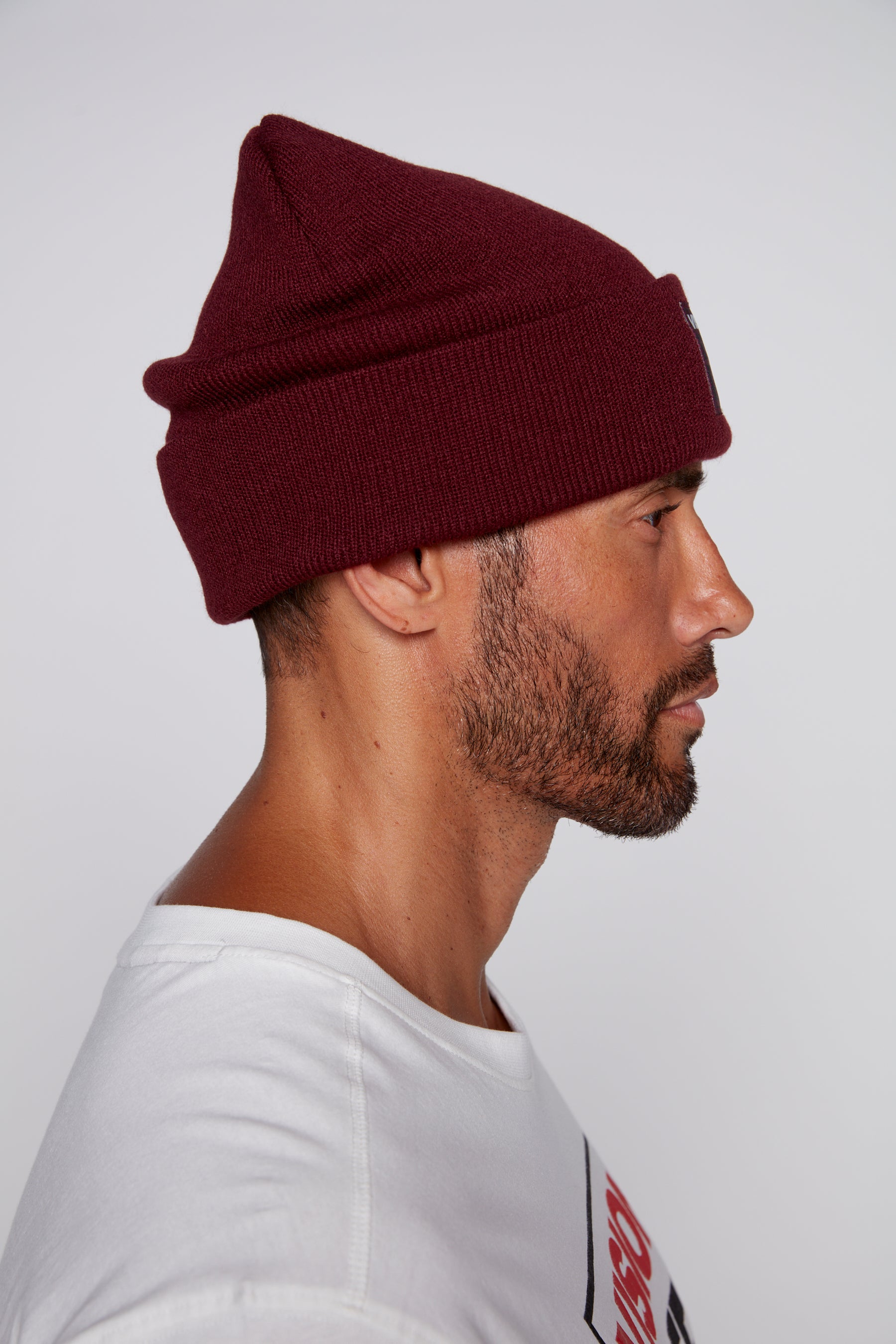 Cuffed Knitted Beanie With Large Logo Patch - OXBLOOD