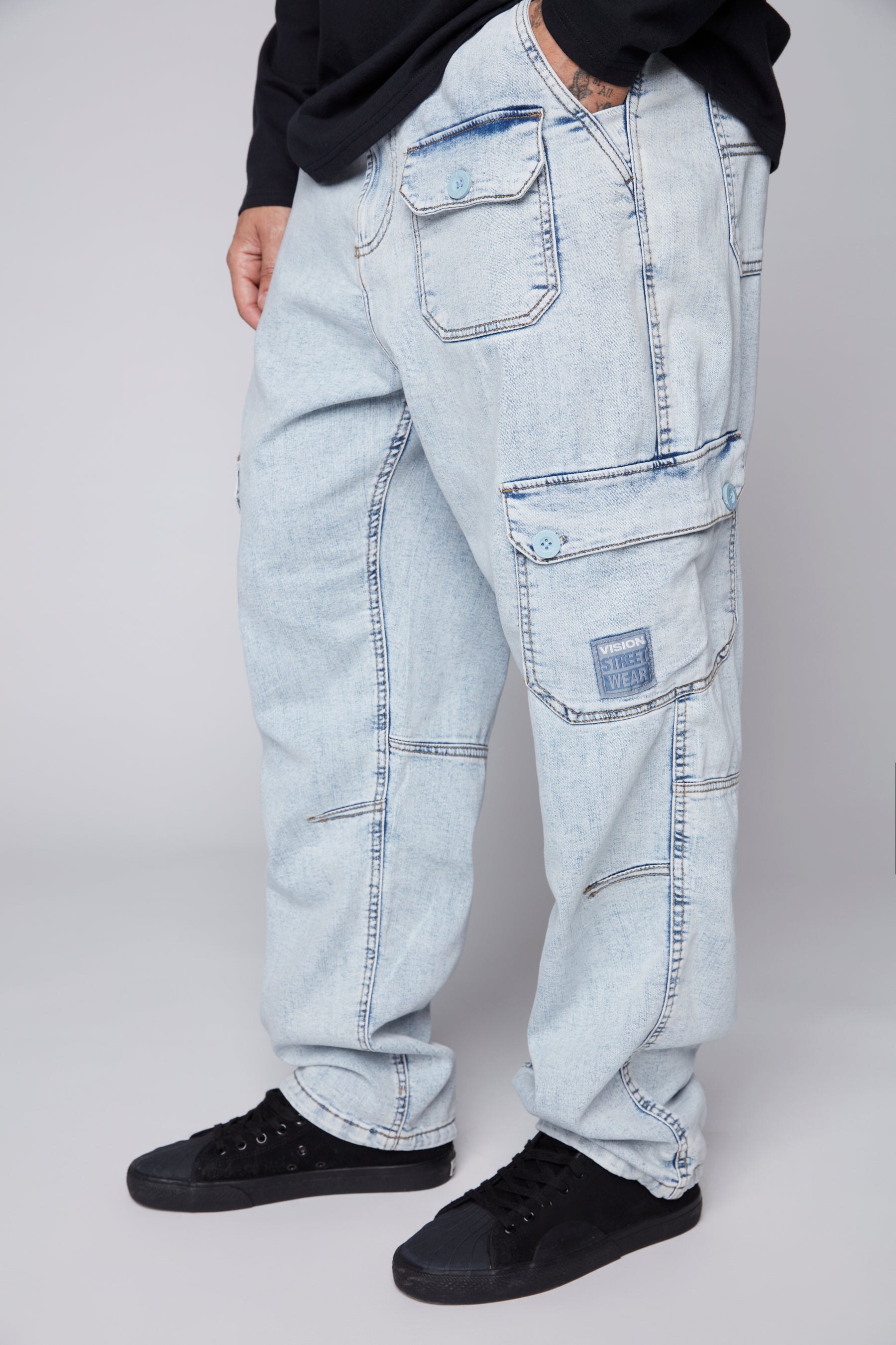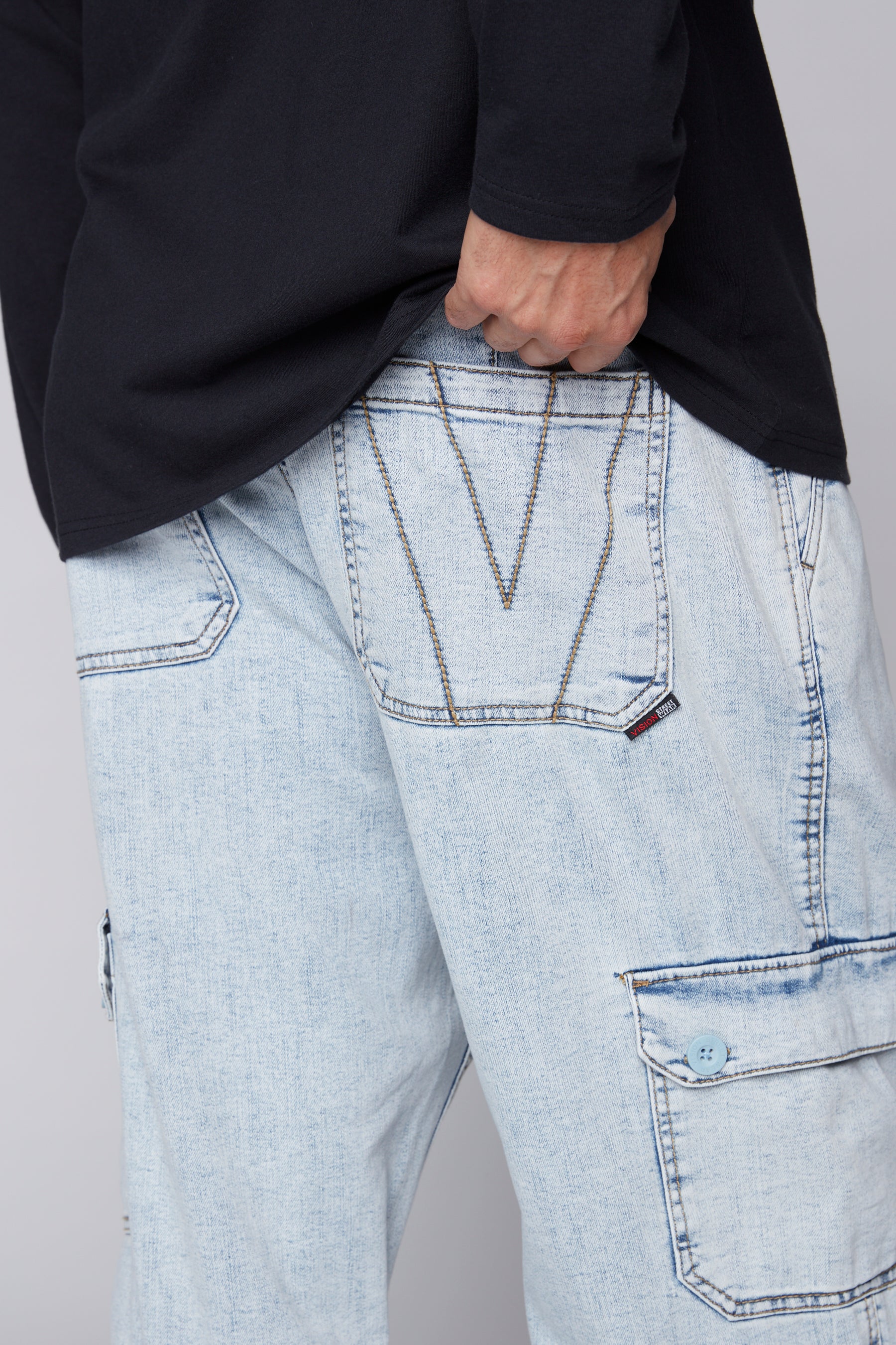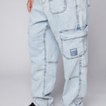 GELFAND - Pantalon cargo coupe ample avec ourlets ajustables - Denim Bleu Pâle