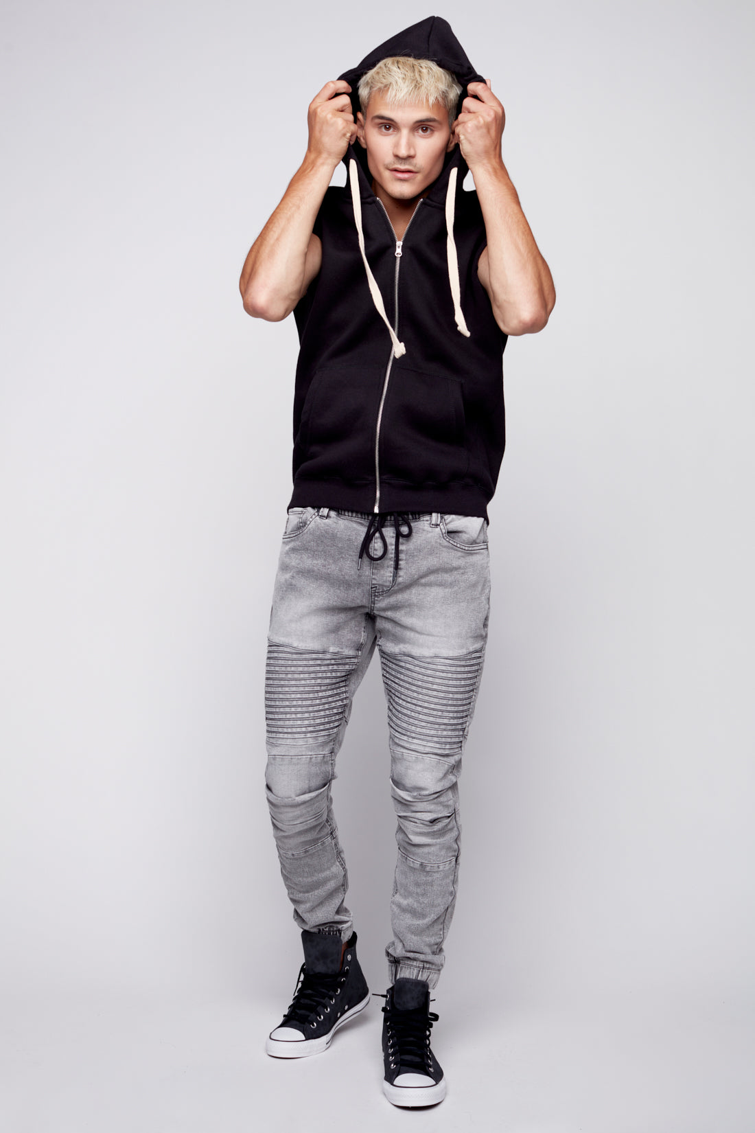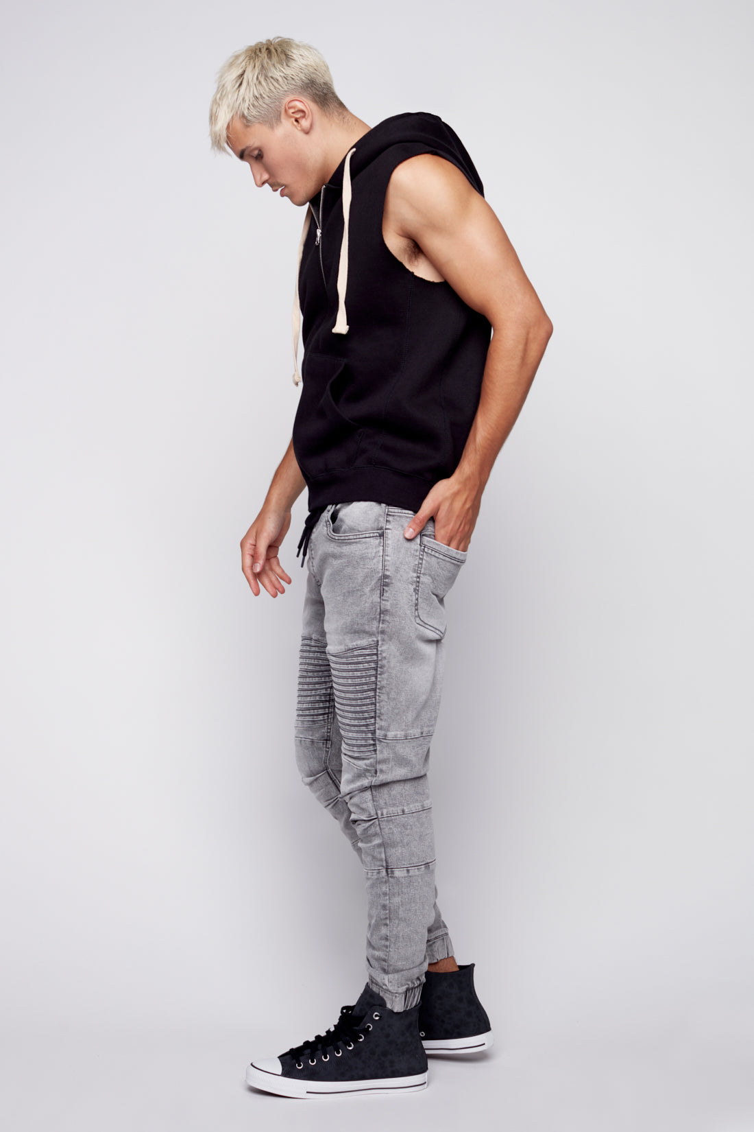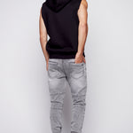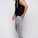 JACKSON - Jogger Moto Nervuré 5 Poches - Lavage à L'acide Gris Foncé