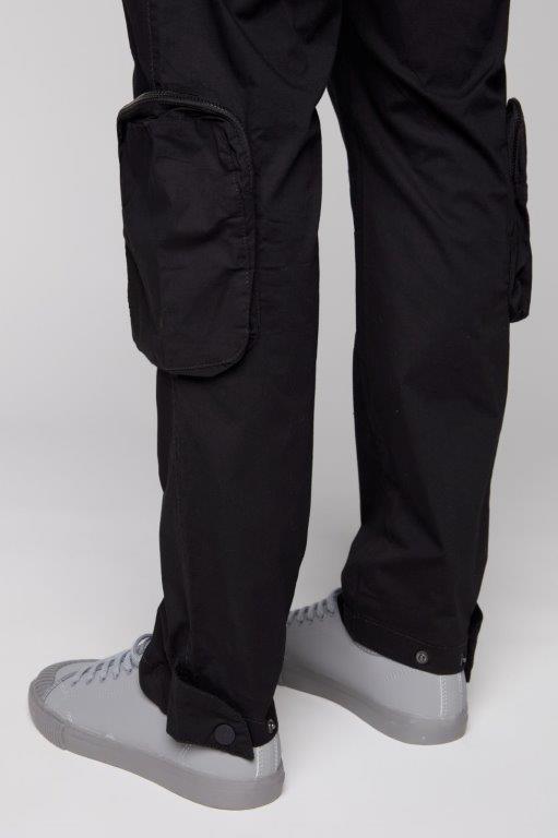 TRAVIS - Pantalon d'utilité cargo en popeline extensible avec ourlet réglable - Noir