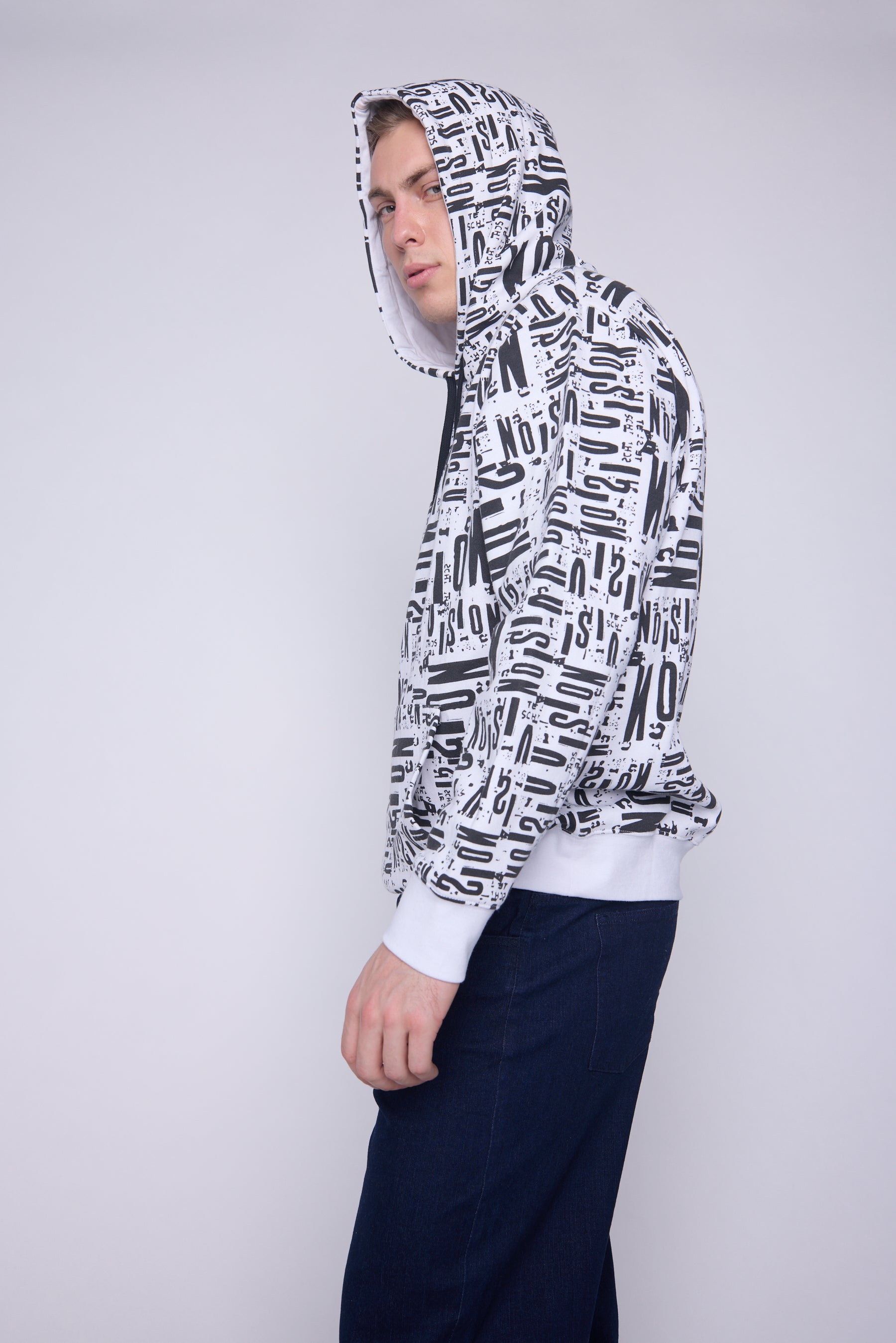 Chandail à capuchon en molleton avec imprimé intégral- Ivoire