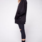 Chandail à capuchon en molleton avec logo emblématique- Noir