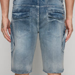 Lounis Sebaa KRAVITZ - Mens 5-Pockets Pull-On Cargo Denim Shorts - Vintage Light Blue Wash