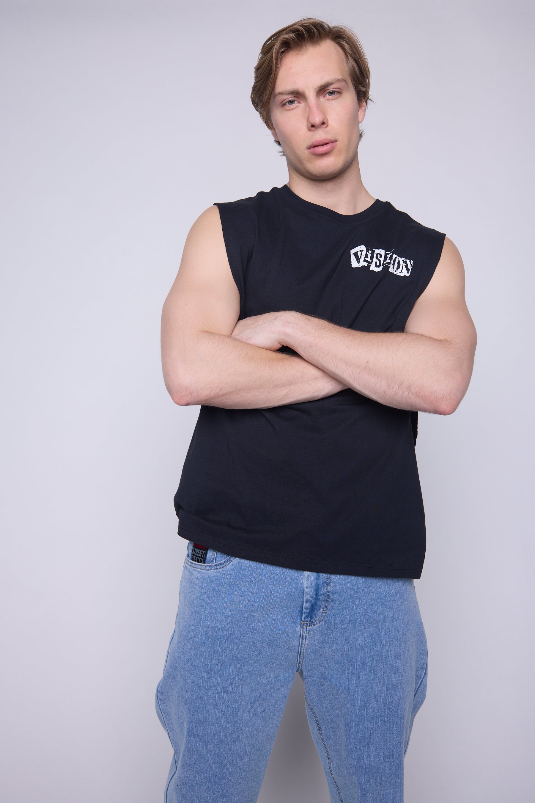 Vision Street Wear Muscle Deep Armhole Vintage Poster Prints Black